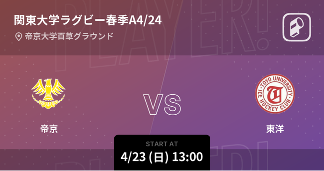 4/23(日)13:00 帝京大学 vs 東洋大学