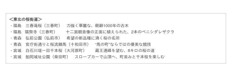 2011年3月11日の被災以来、厳しい現実と希望の光が交錯する日々の中で、桜はその土地で花を咲かせ、人々を励ましてきました。それから9年、復興の道を歩み続ける東北地方へエールを込めて、美しい桜を巡る旅へ出かけてみませんか。また、郷里・宮城県の桜に思いを込めて、女優・鈴木京香さんからのメッセージも掲載します。