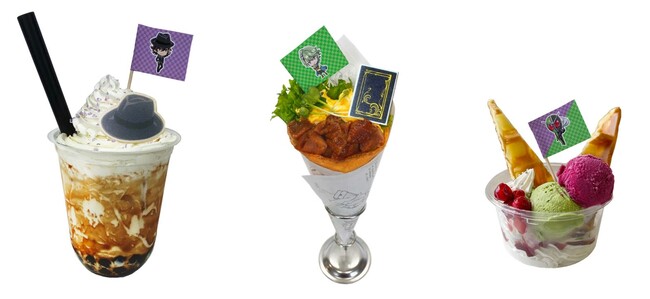 作品をモチーフにしたオリジナルメニューを販売します。対象メニューを1品お買い上げごとに、ステッカー(全8種/ランダム配付)を1枚プレゼント!