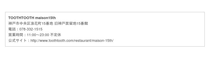 旧居留地で最も古い異人館レストラン「TOOTHTOOTH maison15th」