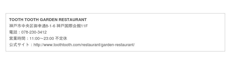 国際会館11階「そらガーデン」に隣接した「TOOTH TOOTH GARDEN RESTAURANT」