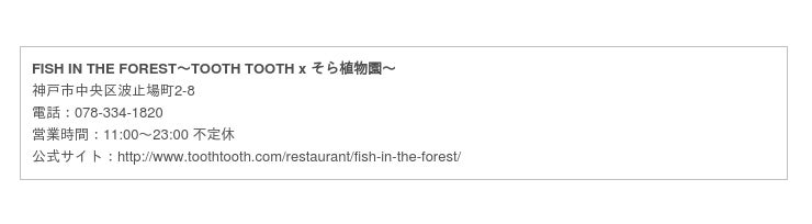 メリケンパークのボタニカルレストラン「FISH IN THE FOREST〜TOOTH TOOTH x そら植物園〜」