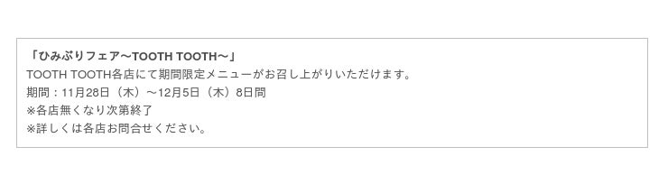 TOOTHTOOTH(http://www.toothtooth.com/)レストラン3店舗にて、