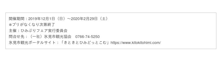 11月28日(木)〜12月5日(木)8日間「ひみぶりフェア inKOBE」で「ひみぶり」の美味しさをPR!