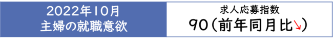 【主婦の就職意欲調査 2022年10月】主婦求人の応募指数90(前年同月比-8)