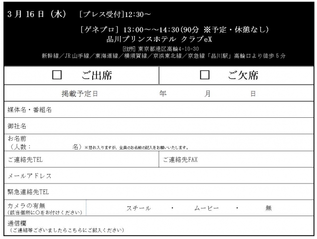 *なお、報道関係以外の媒体様は掲載前に写真・原稿確認が必要となりますので、