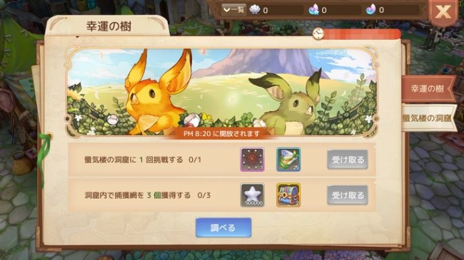 また、ダンジョンの実装を記念して「限定ミッション」が登場しています。蜃気楼の洞窟に現れたモンスターの調査を進めて、報酬アイテムを獲得しましょう!