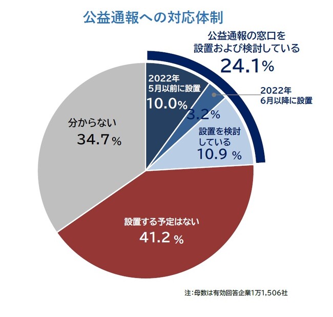 『公益通報の窓口を設置および検討している』企業は24.1%だった