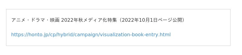 〜アニメ化、ドラマ化、映画化作品を取りそろえたhonto2022年秋メディア化特集がオープン〜