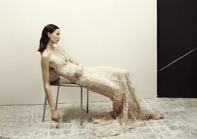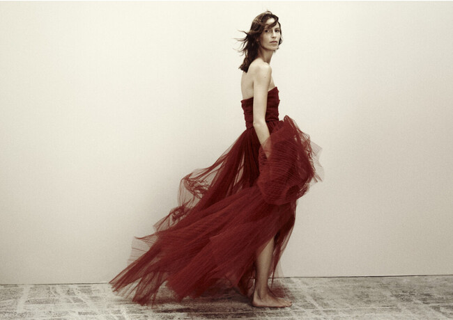 「ポエティックで官能的、そして個性的な本コレクションは、レース、チュール、シルクのフェミニンなドレスと、よりマスキュリンなオーバーサイズのテーラリングとのバランスをとり、モダンなイブニングウェアの完璧な方程式を作り上げました」H&M Studio コレクションデザイナー カトリーン・ドイチュ(Kathrin Deutsch)