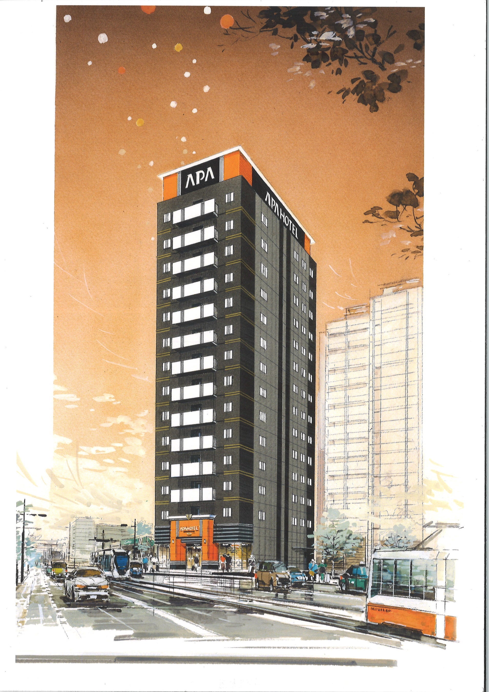アパホテル〈熊本駅前〉は、熊本県内においては初の新築ホテルとなる。本ホテルは、九州新幹線・JR各線「熊本駅」より徒歩4分と交通アクセスが至便な駅前に位置し、ビジネスやレジャー需要に適した立地となっている。構造・規模は鉄骨造・地上14階建、全147室、レストランを併設する。設計は株式会社日企設計、施工はライフデザイン・カバヤ株式会社、デザイン監修は株式会社辻本デザイン事務所が担当し、2027年8月の開業を予定している。