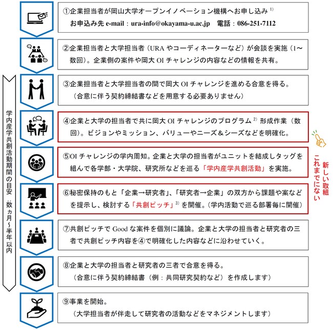 「岡大OIチャレンジ」に関する営業のご連絡を頂くことがございますが、現在、共創パートナーの募集を実施しております。個別の取り組みに関することや営業の案内には対応しかねますので、何卒よろしくお願い申し上げます。
