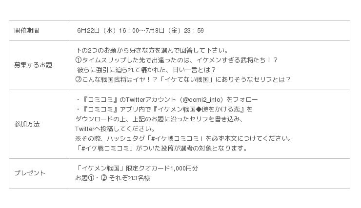 ■『イケメン戦国◆時をかける恋』×『コミコミ』タイアップ記念!Twitterキャンペーン概要