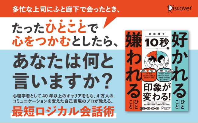 株式会社ディスカヴァー・トゥエンティワン(本社:東京都千代田区、取締役社長:谷口奈緒美)は2022年3月25日に『10秒で好かれるひとこと 嫌われるひとこと』(佐藤綾子・著)を刊行しました。