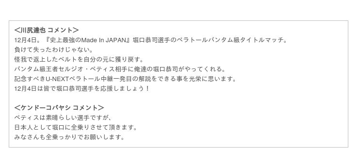 セルジオ・ ペティス×堀口恭司『BELLATOR 272』を12月4日にU-NEXT独占ライブ配信!当日は解説:川尻達也、ゲスト:ケンドーコバヤシが参戦決定!