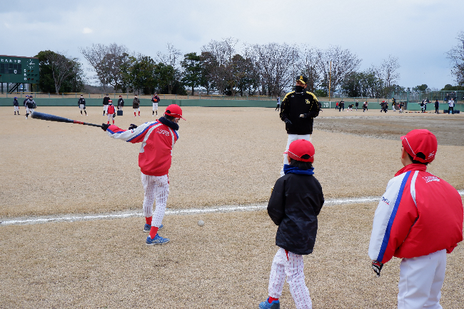 非常に寒い中での開催となりましたが、ご参加者たちは元気いっぱいに野球教室を楽しんでいました。