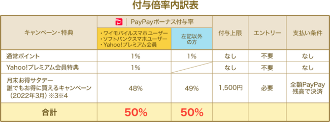 ※4「月末お得サタデー 誰でもお得に買えるキャンペーン(2022年3月)」のPayPayボーナスの付与上限は、1,500円相当です。