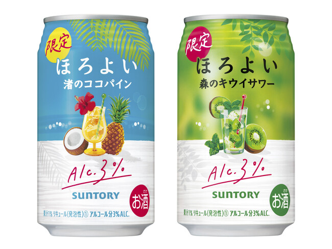 サントリー(株)は、「ほろよい〈渚のココパイン〉」「同〈森のキウイサワー〉」を4月18日(火)から全国で期間限定新発売します。