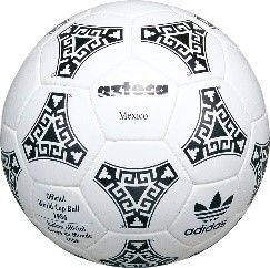 FIFA ワールドカップ™で最初の人工皮革製試合球。これにより本革(牛革)と比較し、耐久性を向上するとともに吸水性を抑える事が可能になりました。デザインは古代アステカ文明の歴史を表現しています。