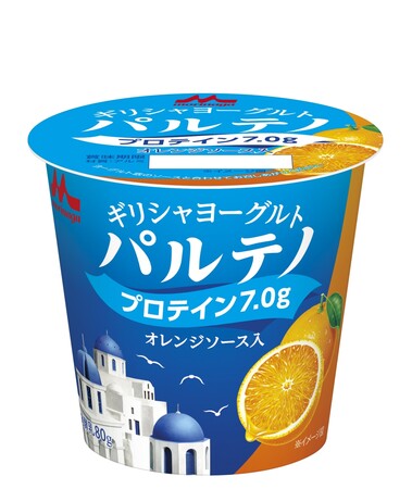 新商品の「ギリシャヨーグルト パルテノ オレンジソース入」は「パルテノ」ならではの濃厚でクリーミーなヨーグルトの下に、酸味と甘みのバランスを追求したオレンジ果肉・ピール入りソースを敷いた、おいしくプロテインも補給できる一品です。