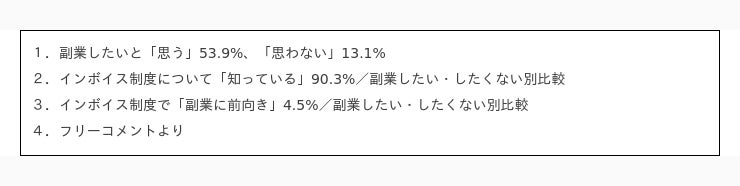 ・請負の副業を考えていないので、インボイス導入による不便はない(60代:契約社員)