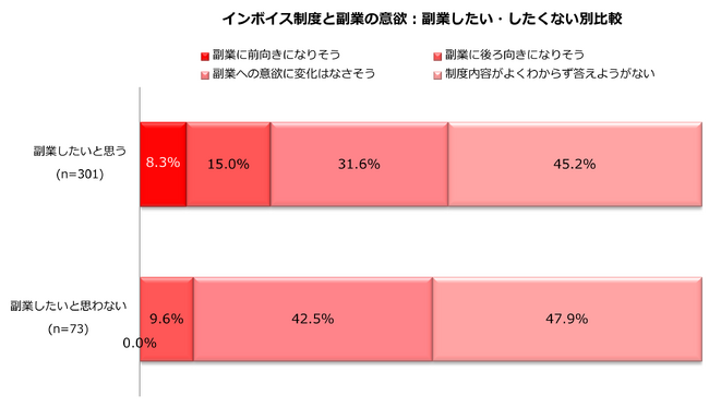 3.インボイス制度で「副業に前向き」4.5%/副業したい・したくない別比較