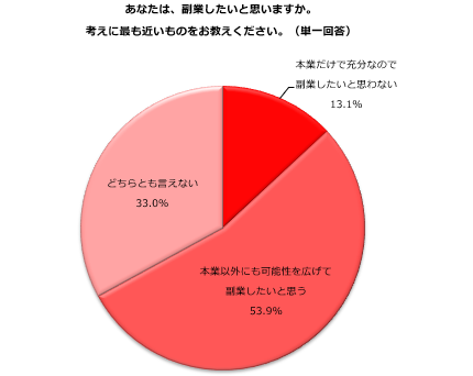 1.副業したいと「思う」53.9%、「思わない」13.1%