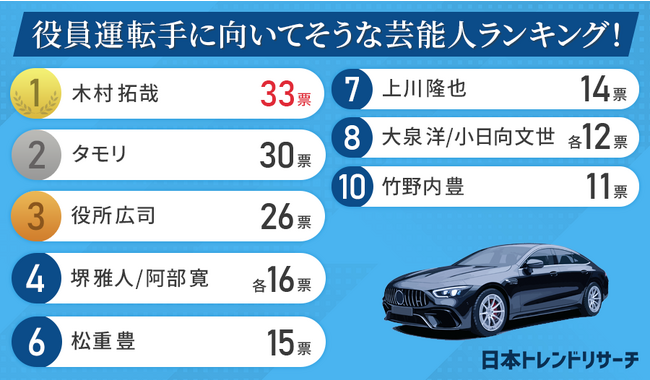 日本トレンドリサーチ・役員運転手に向いてそうな芸能人に関する調査