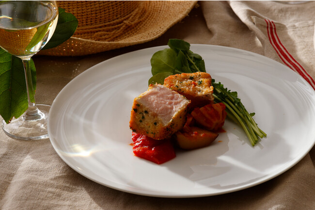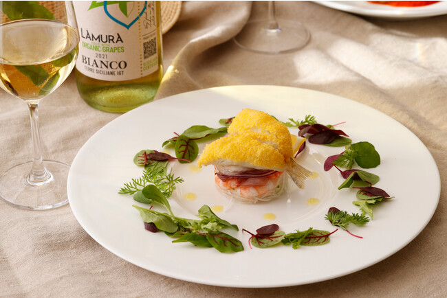 とうもろこしの粉で黄色く鮮やかに仕上げた鱚のフリットや、イカ墨を練り込んだパスタに帆立やウニを添えた魚介の旨味を存分に味わう冷製パスタ、イタリア・シチリア島の伝統料理「カポナータ」をソースにお召し上がりいただく仔牛肉のパン粉焼きなど、イル・ジャルディーノ料理長 冨澤 寛がお届けする、イタリア気分をご堪能いただけるディナーです。キリッと冷えたスパークリングワインや白ワインとのペアリングをお楽しみいただくのもおすすめです。目の前に広がる異国情緒あふれる庭園の煌めくイルミネーションとともに、心地よく吹く夜風を感じながら旅するように過ごす優雅な夏の夕べをいかがでしょうか。