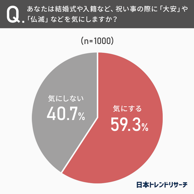 ■59.3%が、結婚式や入籍など、祝い事の際に「大安」や「仏滅」などを気にしている