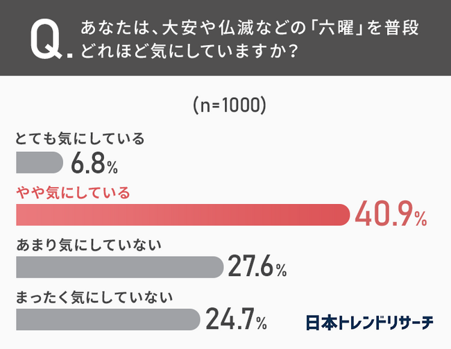 ■47.7%が、大安や仏滅などの「六曜」を気にしていると回答