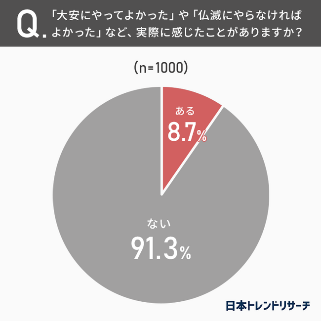 8.7%が、「大安にやってよかった」や「仏滅にやらなければよかった」など、実際に感じたことが「ある」と回答しています。
