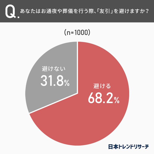 ■68.2%が、お通夜や葬儀を行う際、「友引」を避けると回答