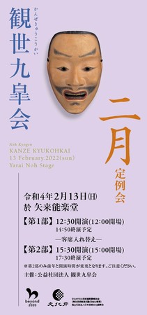 観世九皐会『2月定例会』が2022年2月13日(日)に矢来能楽堂(東京都新宿区)にて上演されます。チケットはカンフェティ(運営:ロングランプランニング株式会社、東京都新宿区、代表取締役:榑松 大剛)にて発売中です。