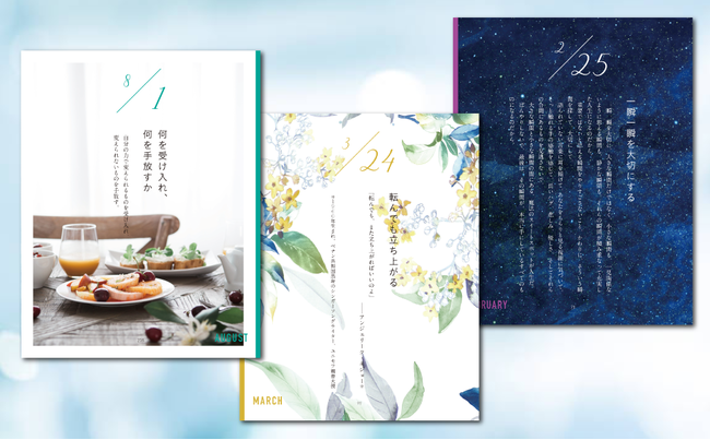 日めくりカレンダーのように、毎日変わる言葉とデザインを楽しみながら自分が変わっていくのを感じてみましょう。ポジティブなマインドセットに役立つ1冊です。