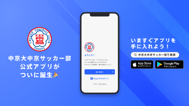 AppStoreもしくはGooglePlayで「中京大学附属中京高等学校サッカー部」と検索!
