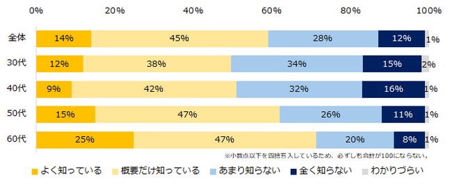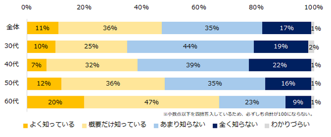 【図1】2025年4月から、継続雇用を希望する「65歳までの雇用確保」が、全企業に「義務化」されることをご存知ですか?(年代別)
