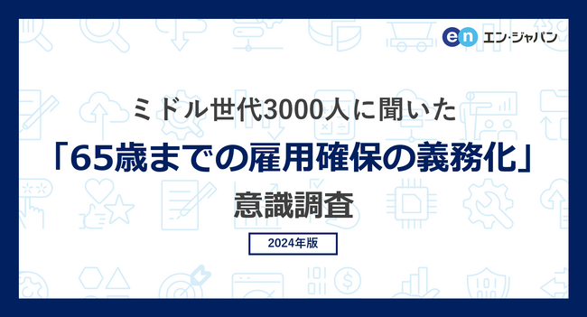 エン・ジャパン株式会社(本社:東京都新宿区、代表取締役社長:鈴木孝二)が運営するミドル世代のための転職サイト『ミドルの転職』(https://mid-tenshoku.com/)上で、サイトを利用している35歳以上のユーザーを対象に「65歳までの雇用確保の義務化」についてアンケートを行ない、3,059名から回答を得ました。以下、概要をご報告します。