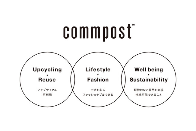共有、共同、常識、良識を意味する「common(sense)」と郵便・提示する・標柱を意味する「post」を組み合わせた造語。敷居が高いと思われがちな「アップサイクル」という考え方に、ファッションの分野から、スタイルのある新しい価値や考え方を提示していく。