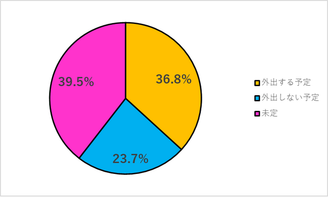 「今年のGWは外出する予定はありますか?」の質問については、「外出する予定」が36.8%、「外出しない予定」が23.7%という結果となりました。 「未定」の人も39.5%いますので、まだまだ外出する人は増えそうです。