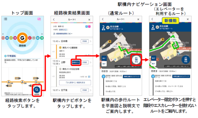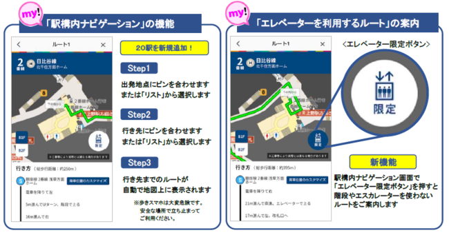 東京メトロmy!アプリの「駅構内ナビゲーション」機能に「エレベーターを利用するルート」の案内を新たに搭載!