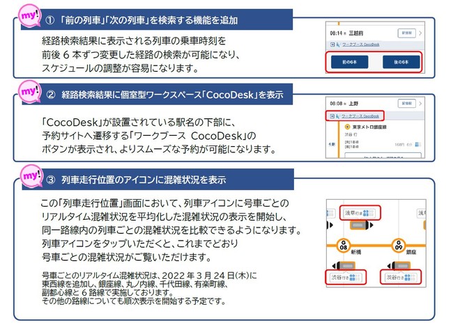 「東京メトロmy!アプリ」の経路検索機能がさらに便利に!