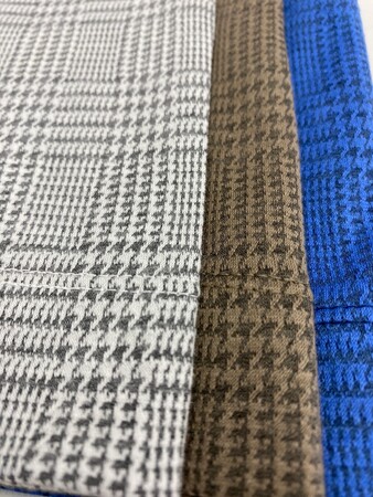 ・今までにないTriporousを使った生地を作り上げるために、色を出すことと、柄の表現をすることを考え、ジャガードで(※)グレンチェックを編み上げました。