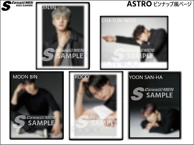 毎回、大反響! S Cawaii!のメンズ特集号に3回目の登場となるASTROの皆さん。今回はジンジンさん、チャウヌさん、ムンビンさん、ラキさん、ユンサナさんの、メンバー5名での登場です。今回も完全撮りおろし! うっとりするような美しいビジュアルを披露してくださいました。そして今回はスぺシャル企画! 8ページ中、5ページがピンナップ風のデザインになっており、切り取って使うことが可能です。インタビューでは各メンバーに、「MJさんのソロ曲『Story』にちなんで、MJさんとの印象深いエピソード(Story)を教えてください」「AROHAに賞をあげるなら?」など、いろんな質問に答えていただきましたので、お楽しみに!