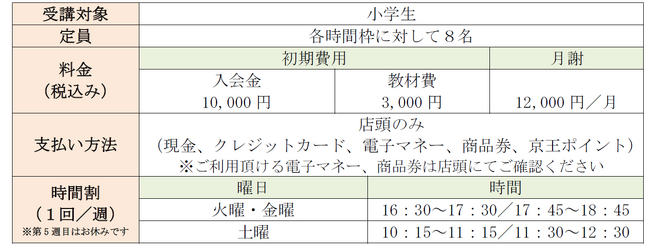 小学生を対象としたカリキュラムを組んでおり、中学高校レベルへのステップアップも図ることができます。