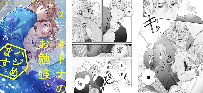 今回、配信となるのは、大逆転恋愛コメディーの『オトナのお勉強、ハジめます。(合本版)2、3巻』(白湯)と、異世界世直しファンタジー『女子高生神話 〜聖女は家に帰りたい〜(合本版)1、2巻』(あまつわい)の2タイトルで、両作品とも完結巻になります。また、電子単行本は単話連載10話分以上に加え、描き下ろしの特典漫画を収録しております。