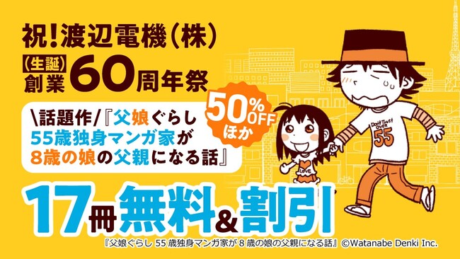 電子書籍販売サイト「ebookjapan」をヤフー株式会社と協力して運営する株式会社イーブックイニシアティブジャパンは、話題のエッセイ漫画『父娘ぐらし 55歳独身マンガ家が8歳の娘の父親になる話』(KADOKAWA)の著者・渡辺電機(株)の生誕60周年を記念して、フェアを開催いたします。