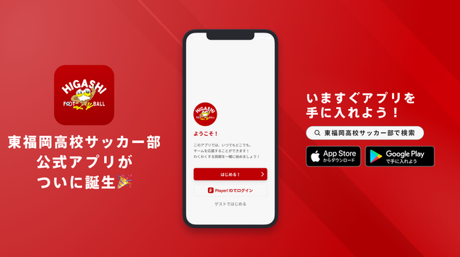 AppStoreもしくはGooglePlayで「東福岡高校サッカー部」と検索!