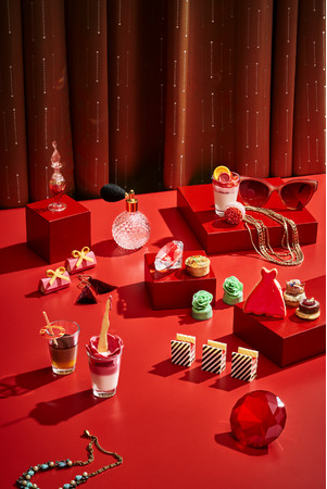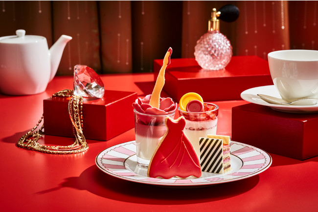 ラブリーなピンクのスカートから赤いパンプスを履いた足がスラリとのびるパンナコッタ「ストロベリーヒール」や、バッグをモチーフにしたスタイリッシュなストライプ柄の「ベリーオペラ」、優美なドレープのように生ハムが柔らかに重なる「ハムとハーブクリームチーズ」など、瑞々しい旬のいちごとともにトレンドを肌で感じるアフタヌーンティーをお楽しみください。