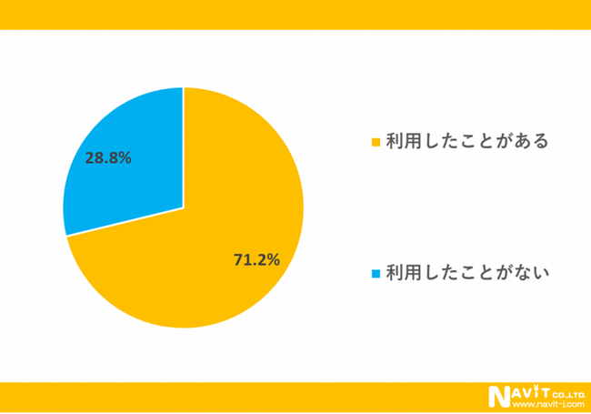 観光バスを利用したことがあるかどうかについては、「利用したことがある」が71.2%、「利用したことがない」が28.8%という結果になり、約7割の人が観光バスを利用したことがあると分かりました。